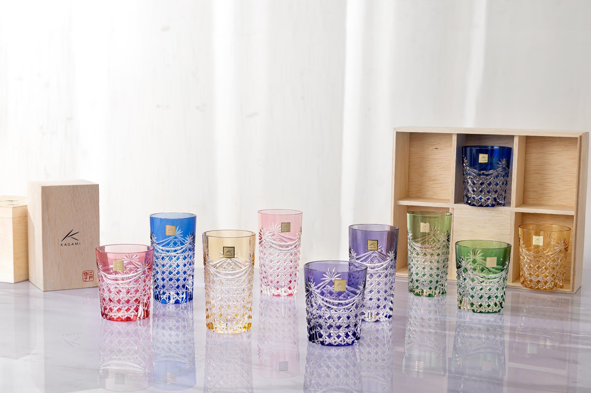 Kagami là một trong những biểu tượng của nghệ thuật pha lê Nhật Bản. Thương hiệu này nổi tiếng với kỹ nghệ chế tác thủ công tinh xảo, kết hợp giữa độ chính xác gần như tuyệt đối và tinh thần thẩm mỹ tối giản đặc trưng của Nhật Bản.